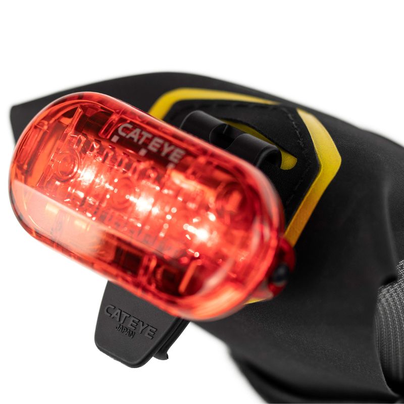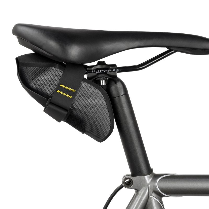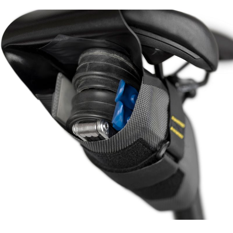 In der Tool Pack hat das Nötigste Platz, das man für eine Reparatur unterwegs braucht. Sie bietet Platz für 2 Reserve-Schläuche, Reifenheber, ein kleines Multi-Tool und eine CO2-Patrone. Die Tasche passt genau unter den Sattel und wird mit einem Hypalon-Riemen mit Klettverschluss am Rad befestigt. Verarbeitet wurde ein leichtes und robustes Gewebe, das komplett wasserdicht ist. An der Tasche gibt es auch eine Lasche zur Befestigung eines Rücklichts und hat aich reflektierende Patches.