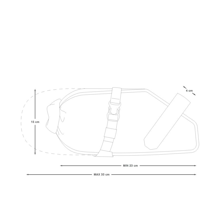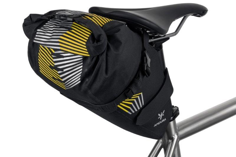 Hergestellt aus einem ultraleichten, wasserdichten Laminat, das für Apidura entwickelt wurde. Die Tasche wiegt weniger als 210 g und wird mit einem stabilen Dreipunkt-Befestigungssystem sicher befestigt. Die Tasche passt ergonomisch unter den Sattel, das Schwanken wird minimiert und der Luftwiderstand verringert.