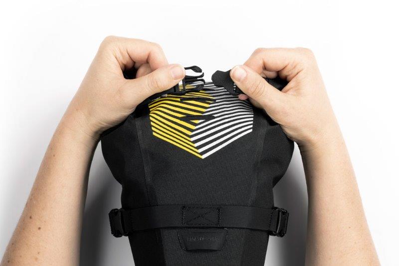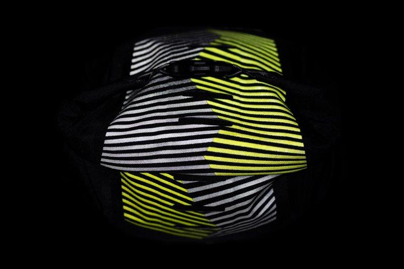 Leichte Befestigungspunkte sind in den Stoff lasergeschnitten, was die Sicherheit erhöht, ohne unnötiges Gewicht hinzuzufügen. Die Satteltasche verfügt über ein kontrastreiches reflektierendes Design, um die Sichtbarkeit bei allen Lichtverhältnissen zu verbessern.