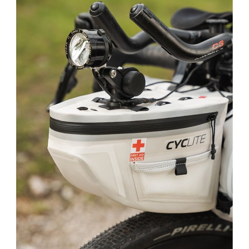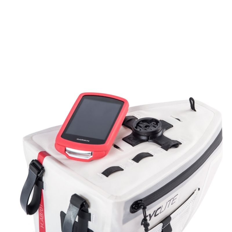 AERO MOUNT / 01 ist eine ultra-leichte und ultra-praktische Lösung für die Befestigung von Licht oder GPS-Geräten an der HANDLE BAR AERO BAG / 01.