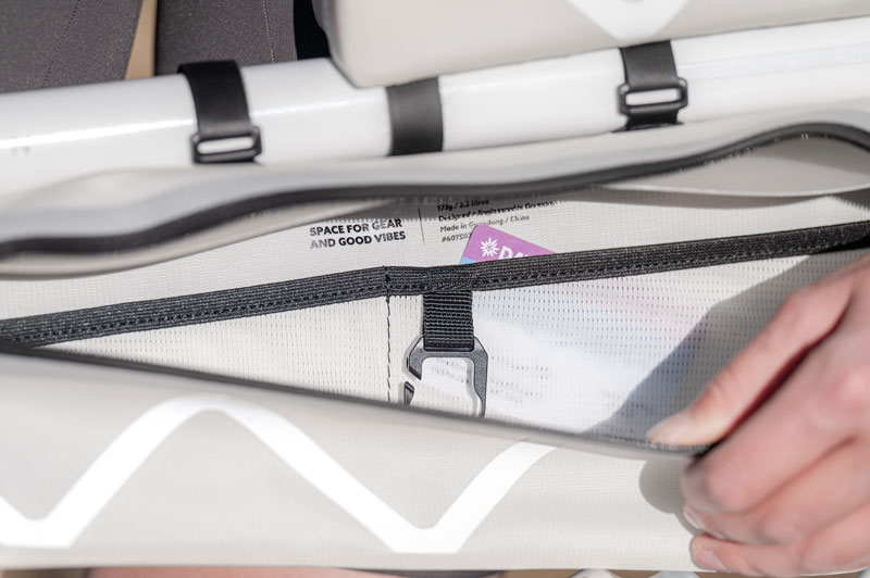 FRAME BAG XT / 02 ist dank unseres eigens entwickelten LiteGrid-RN200T3-Materials ultraleicht, robust und wetterfest. Dafür verarbeiten wir zwei unterschiedlich starke Nylonarten mittels einer speziellen Webtechnik zu einem Ripstop-Gewebe, das anschließend beidseitig beschichtet und hochfrequenzverschweißt wird. So entsteht die perfekte Symbiose aus Leichtigkeit und Stabilität – für wetterfeste Produkte, die sich leicht reinigen lassen.