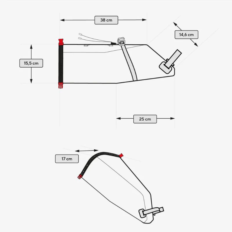 Material: Recyceltes PA/N6.6 200D R/S TPU/PU3, Hypalon, PP, CF-Leiste, AL-Haken, Reflexionsfolie, PP Gurtbänder, POM.