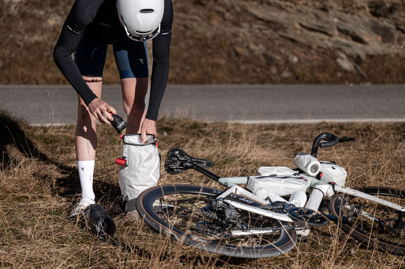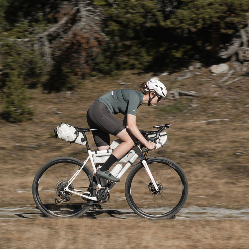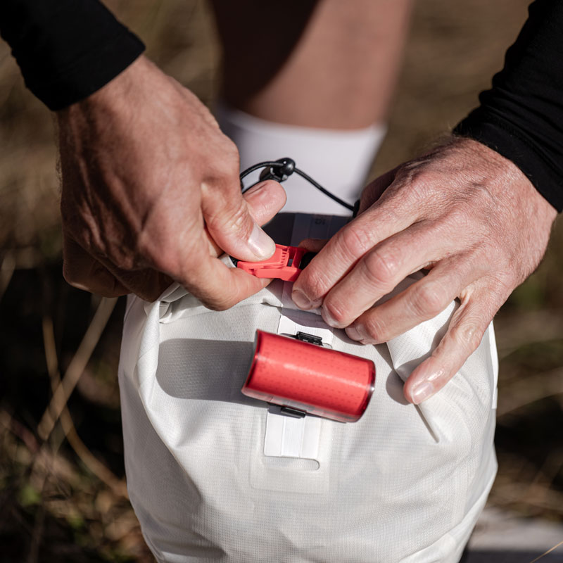SADDLE BAG SMALL / 02 ist eine kleinere und damit noch leichtere Version der SADDLE BAG / 02, mit den bekannten Funktionen des beliebten, größeren Modells. Sie ist damit der perfekte Begleiter für alle Abenteuer, bei denen man kompakt und leicht unterwegs sein möchte, wie den spontanen Overnighter, kürzere Bikepackingtrips oder ein unsupported Mehrtagesrennen. Die kleinere Satteltasche mit 8 Litern Volumen eignet sich perfekt dazu, Dinge für die Nacht wie Schlafsack, Isomatte oder Wechselbekleidung unterzubringen. Praktische Features sind der Rollverschluss, elastische Straps, Reflektoren, Lampenhalter und das bekannte und stabile SR-System zur schwingungsfreien Befestigung unter dem Sattel.