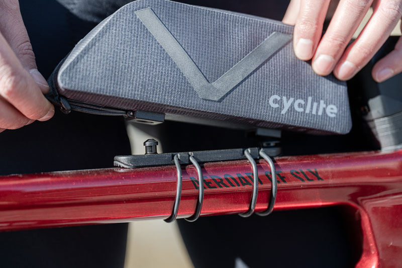 TOP TUBE BAG NANO / 01 lässt sich mit der NANO UNIVERSAL MOUNT und O-Ringen an allen gängigen Oberrohren befestigen. Mit dem separat erhältlichen NANO BOLT MOUNT kann sie direkt an Rädern mit Gewindebuchsen im Oberrohr montiert werden. Sie ist mit allen CYCLITE-Rahmentaschen kompatibel.
