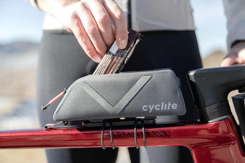 TOP TUBE BAG NANO / 01 eignet sich perfekt zum Verstauen von Verpflegung wie Riegeln oder Gels. Der zentrale Reißverschluss ermöglicht schnellen Zugriff auf den Inhalt. Die schlanke Tasche stört nicht an den Knien, ist aerodynamisch und sitzt sehr stabil auf dem Oberrohr. Sie lässt sich mit einem innovativen Magnetverschluss in Sekundenschnelle anbringen und wieder abnehmen. Ihr minimalistischer Look ergänzt jedes Rad perfekt. Extrem leicht und effizient ist sie die ideale Oberrohrtasche für kürzere Gravel- und Rennradausfahrten oder -rennen.