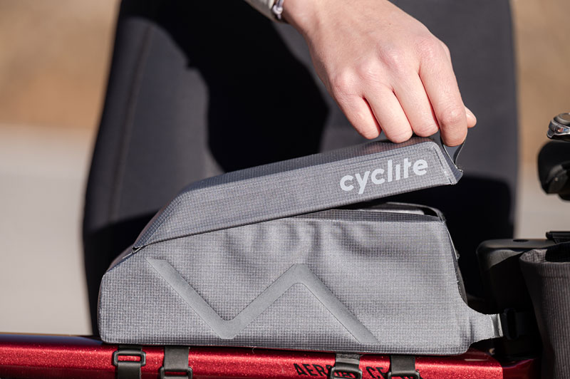 Die TOP TUBE BAG / 03 ist die optimale Lösung für den Transport von Snacks und Ausrüstungsgegenständen, auf die man während der Fahrt schnell zugreifen möchte.