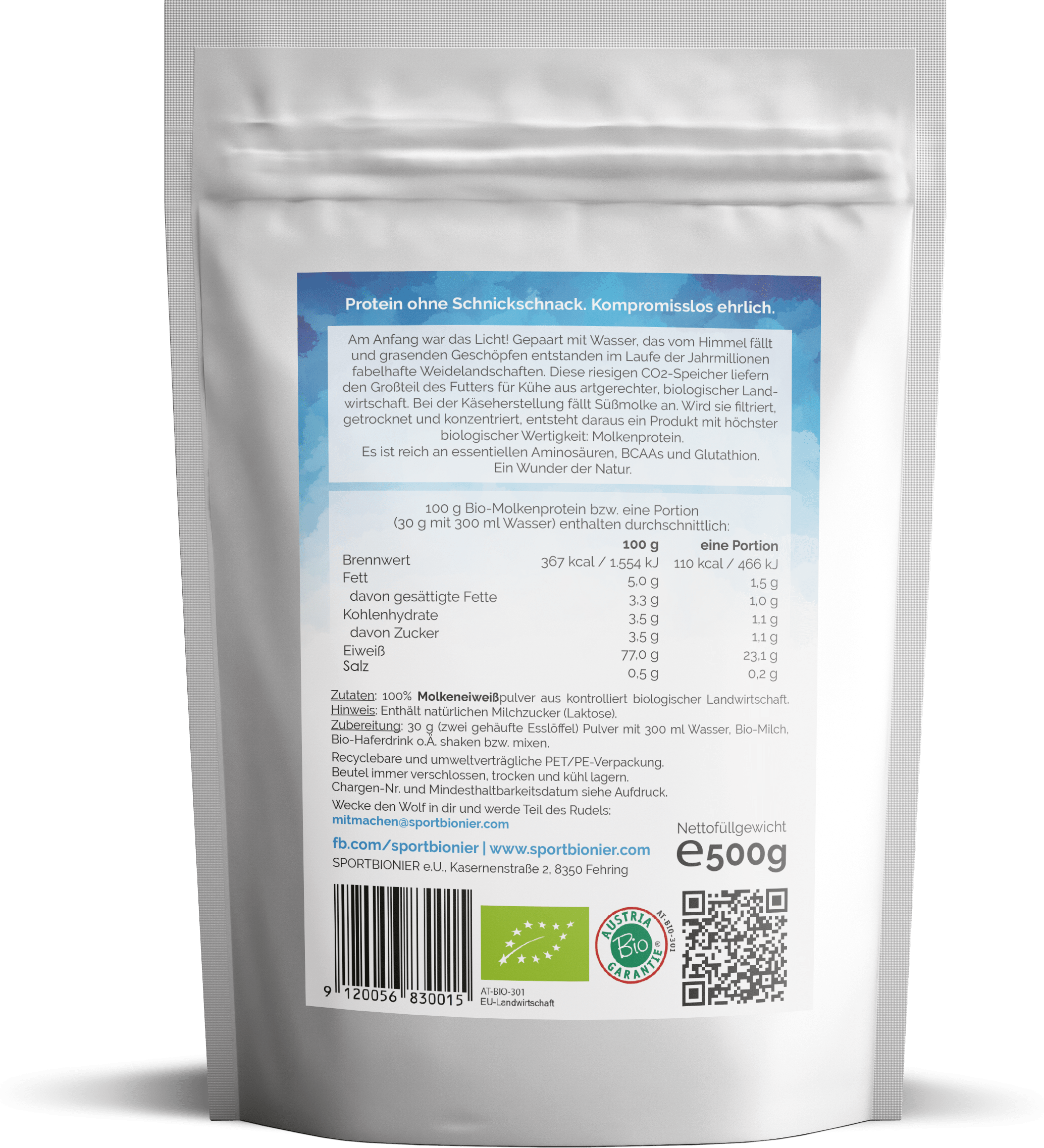 Produktinformationen "Sportbionier Bio Molkenprotein Neutral 500g"