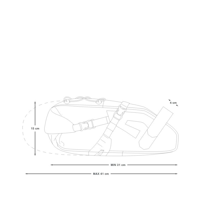 Der Expedition Saddle Pack ist in drei Größen für lange, kurze und längere Abenteuer erhältlich. Darüber hinaus ermöglicht das herunterrollbare Kompressions- und Verschlusssystem, dass das Volumen der Tasche genau an die unterschiedlichen Packanforderungen angepasst werden kann.