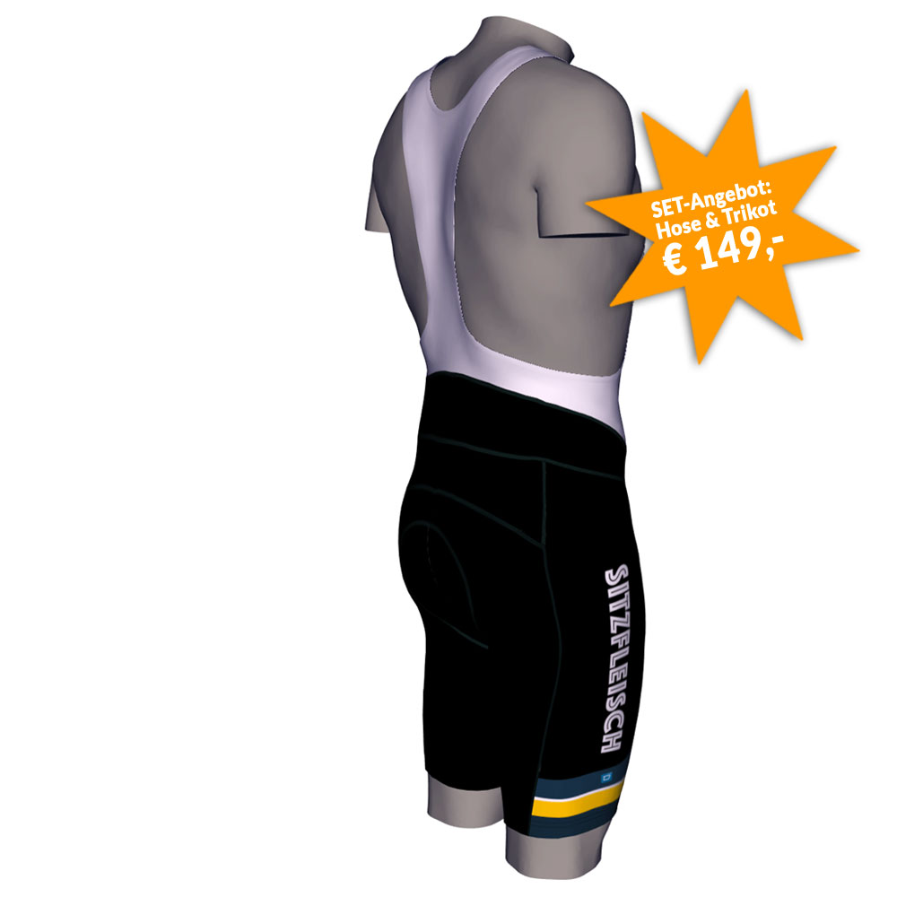 Bekleidungs-Set aus "Sitzfleisch" Kurzarm-Trikot und Trägerhose erhältlich um €149,- statt €164,-