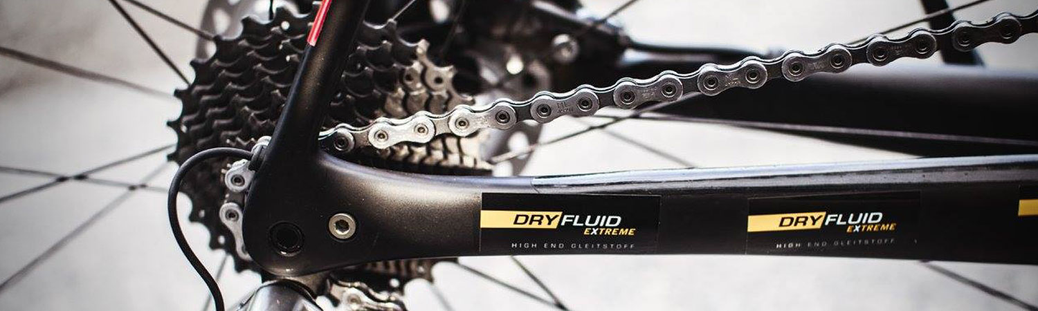Innovativer High-End Gleitstoff zur Pflege von Fahrradketten, Schaltsystemen und Zügen von DryFluid.